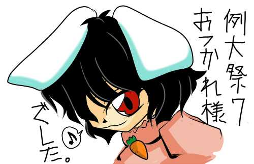 ホロ酔い気分で帰宅してから、↑のてゐのイラストを描く。漫画描く前はそれ程愛着湧いてないキャラでも、描いてみると凄ぇ好きになるってことがよくあります。今回はてゐ。「…何だ、良く見りゃ結構俺のツボを抑えてるキャラじゃないか。」と思いましたとさ。