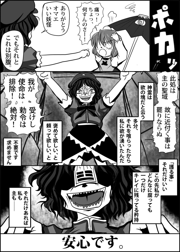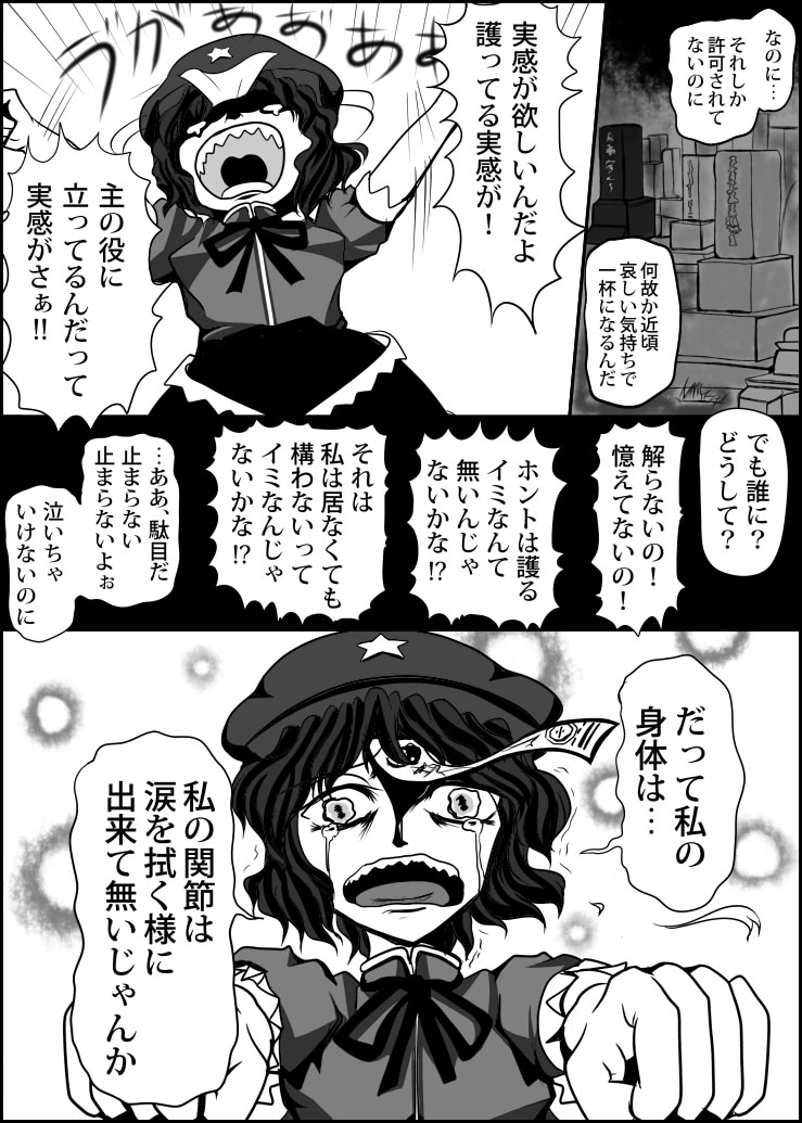 ぶっちゃけ、話云々より3頁目の"涙でぐしゃぐしゃになった芳香"が描きたかっただけかも。他の頁と比べても力の入れ方が違うでしょ?