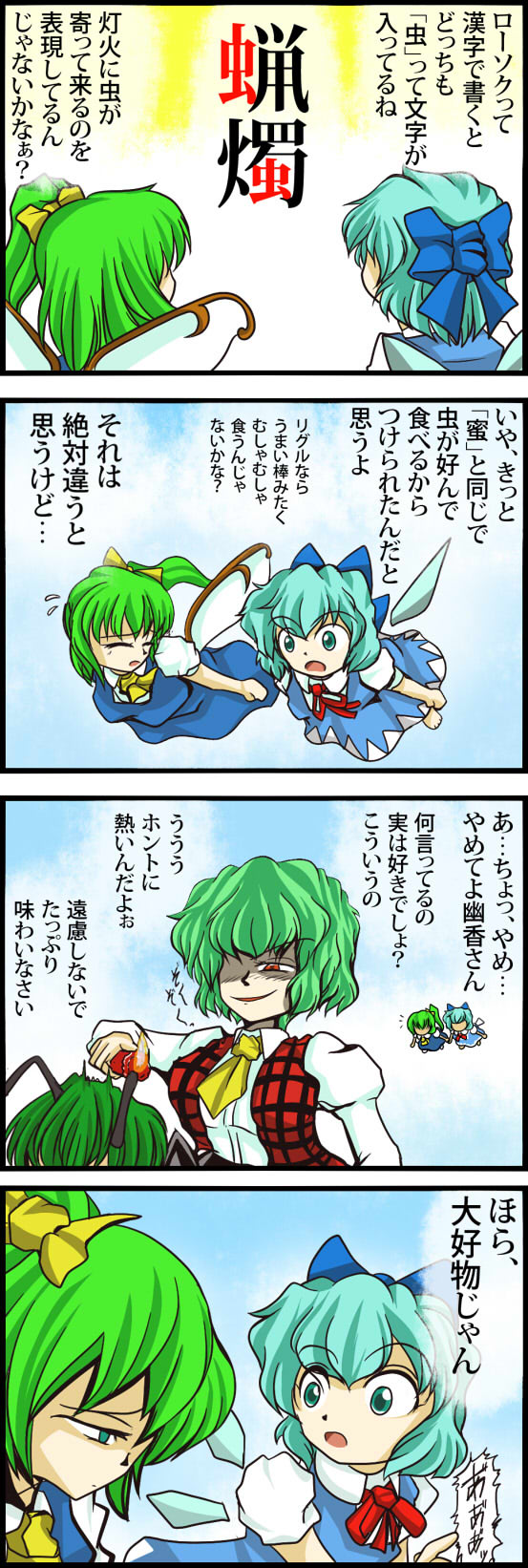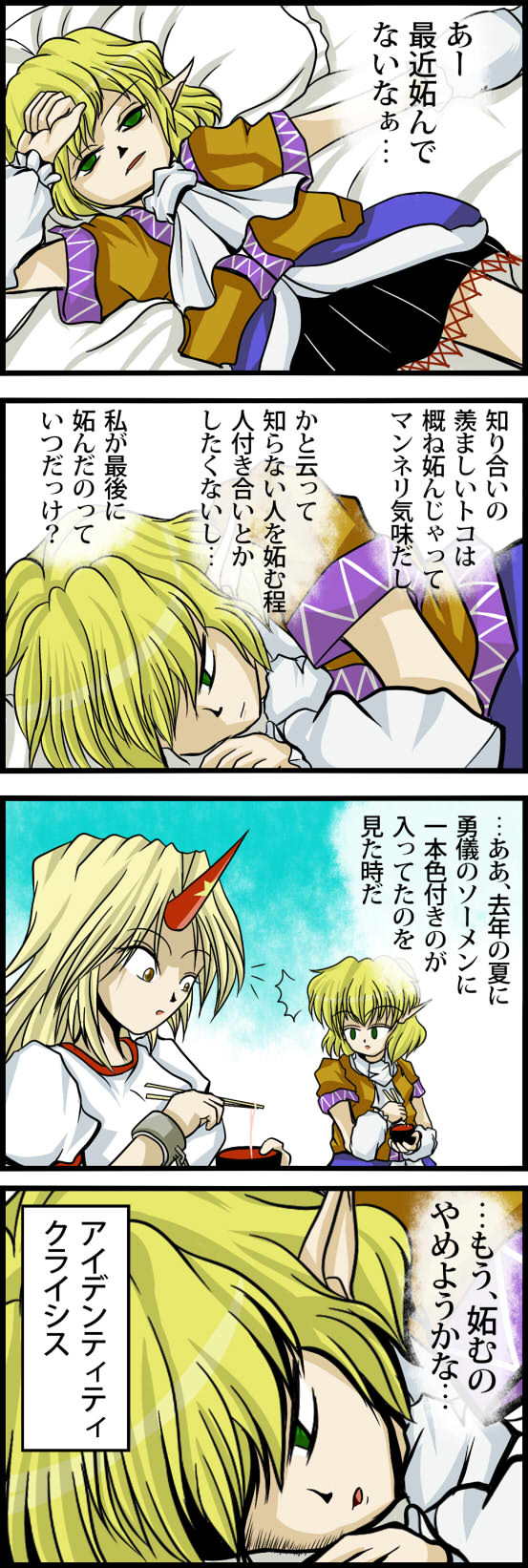 最初思いついた段階では、三コマ目以降“「"ヤマビコ"だから"ビッコ"」という愛称をつけようして、差別用語だから一輪にマジで止められる聖”というオチだったのですが、若い世代に馴染みの無い単語を態々引っ張り出してネタに使ってもそんなに面白がってくれないだろうと、ちょっと大人しめの展開にしました。