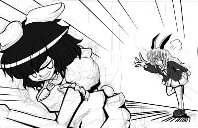ホロ酔い気分で帰宅してから、↑のてゐのイラストを描く。漫画描く前はそれ程愛着湧いてないキャラでも、描いてみると凄ぇ好きになるってことがよくあります。今回はてゐ。「…何だ、良く見りゃ結構俺のツボを抑えてるキャラじゃないか。」と思いましたとさ。